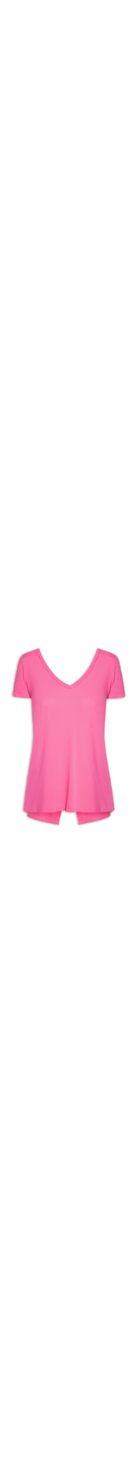 A camiseta rosa é confeccionada em malha leve de poliamida. A peça possui decote v frontal e v profundo posterior, mangas curtas, nome da marca em material refletivo na altura frontal da barra, fenda posterior e shape solto.