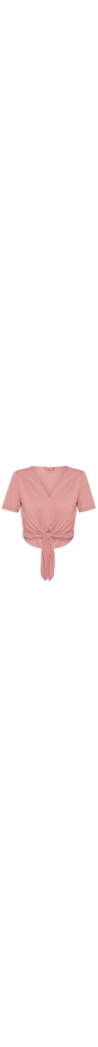 A camiseta rosa é confeccionada por malha de poliamida com média elasticidade. A peça solta ao corpo possui decote V, mangas curtas, recorte frontal para amarração e tag da marca em cor contrastante aplicada na parte posterior.