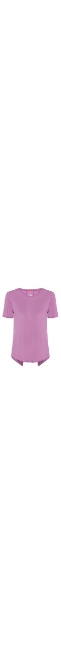A camiseta rosa é confeccionada em malha de poliamida com alta elasticidade. A peça solta ao corpo possui decote redondo, mangas curtas, recortes posteriores vazados com tiras medias e tag da marca aplicada na parte posterior.