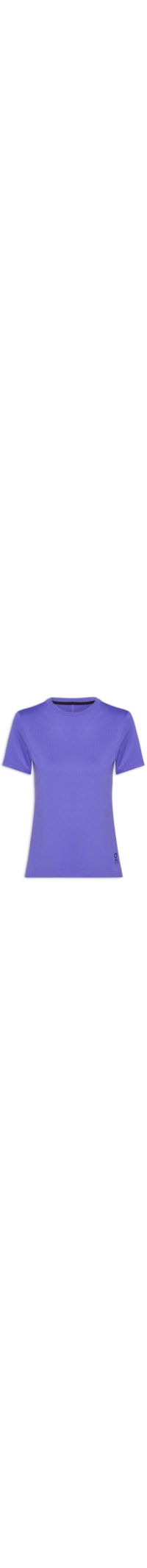 A camiseta lilás é confeccionada em malha com alta elasticidade. A peça solta ao corpo possui decote redondo com acabamento canelado, mangas curtas, recorte posterior e logo da marca estampado na co rpreto na parte posterior.