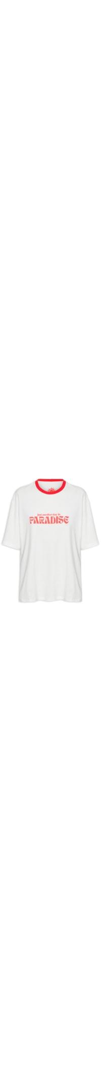 A camiseta branca é confeccionada em malha de algodão com média elasticidade. A peça solta ao corpo possui decote redondo com acabamento canelado em cor contrastante, mangas curtas e estampa frontal escrita aplicada em silk de cor contrastante.