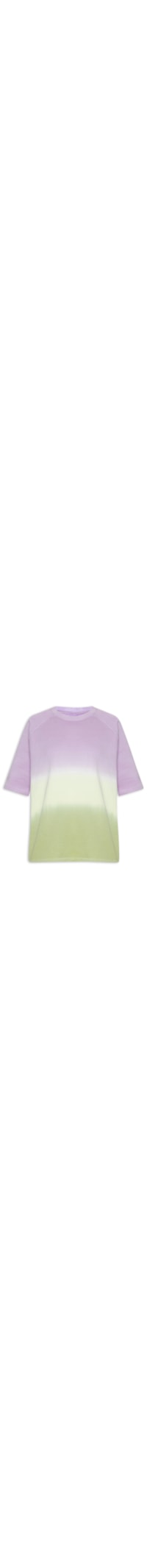 A camiseta roxo é confeccionada em moletinho com média elasticidade. A peça solta ao corpo possui gola careca com acabamento canelado, mangas curtas e estampa tie dye.