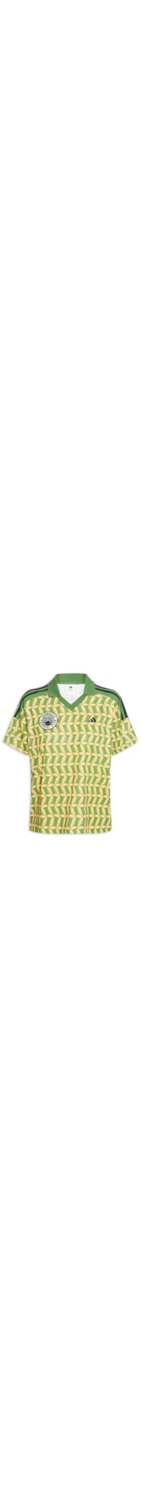A camiseta verde é confeccionada em malha leve com alta elasticidade. A peça solta ao corpo possui gola esporte, mangas curtas com detalhe de listras aplicado, aplicação em numeral na parte posterior, tags da marca aplicadas em patch na parte frontal e padronagem de tucanos em cor contrastante.