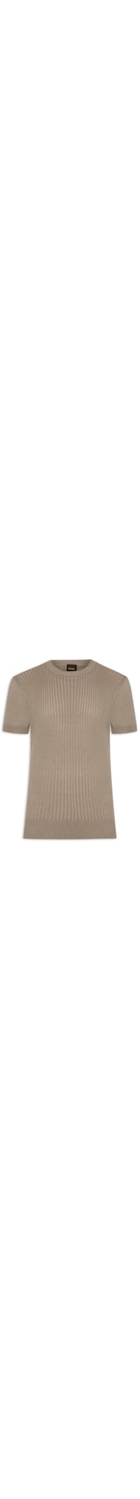 A camiseta marrom é confeccionada em linho misto com média elasticidade. A peça solta ao corpo possui gola careca, mangas curtas, tag da marca bordada na parte lateral e parte frontal com superfície texturizada.