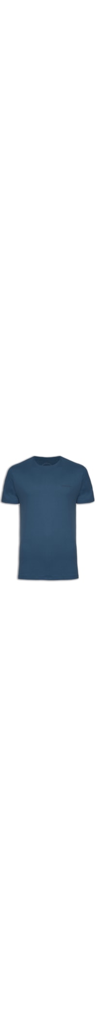 A camiseta azul é confeccionada em malha de algodão. A peça possui gola careca com acabamento canelado, mangas curtas, escrita em silk aplicada na altura do tórax, tag da marca aplicada na barra, shape solto, caimento reto e acabamento pespontado.