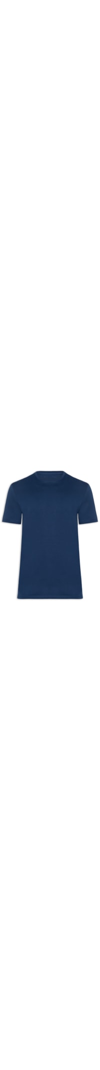 A camiseta azul é confeccionada em malha de algodão sem elasticidade. A peça possui gola redonda com acabamento canelado e mangas curtas.
