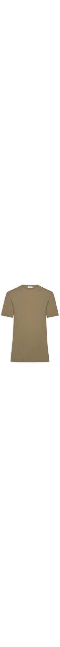 A camiseta marrom é confeccionada em malha de algodão com média elasticidade. A peça solta ao corpo possui gola redonda com acabamento canelado, ombros estendidos e mangas curtas.