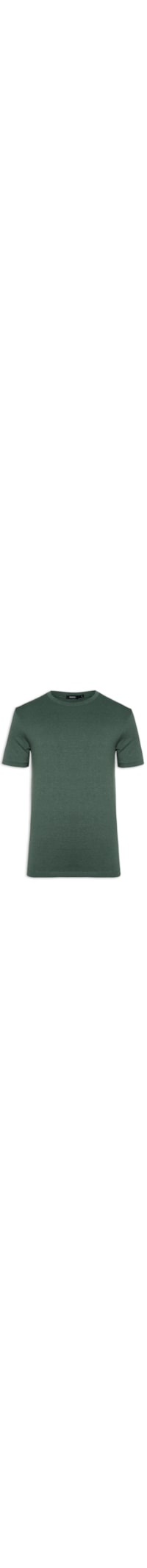 A t-shirt verde é confeccionada em malha de algodão com média elasticidade. A peça solta ao corpo possui gola redonda com acabamento canelado, e mangas curtas.