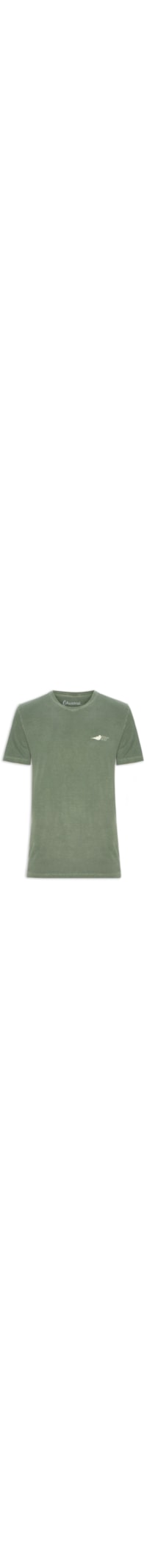 A camiseta verde é confeccionada em malha leve com alta elasticidade. A peça solta ao corpo possui gola arredondada, mangas curtas, ombros estendidos, efeito estonado, estampa figurativa aplicada na parte frontal na altura do tórax e na parte posterior em cor contrastante.