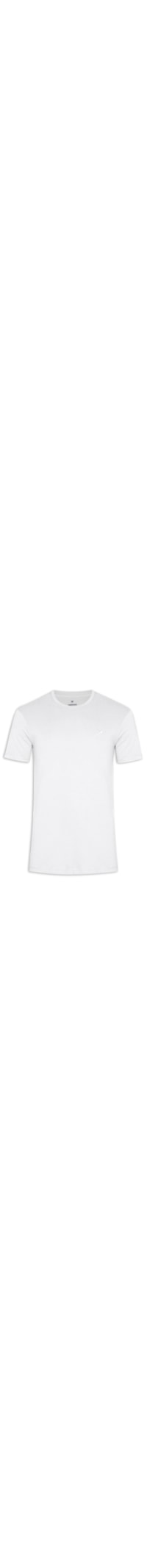 A camiseta branca é confeccionada em malha de algodão. A peça possui gola redonda com acabamento canelado, mangas curtas, logo da marca bordado na altura do tórax em tom contrastante, caimento reto, shape solto e acabamento pespontado.