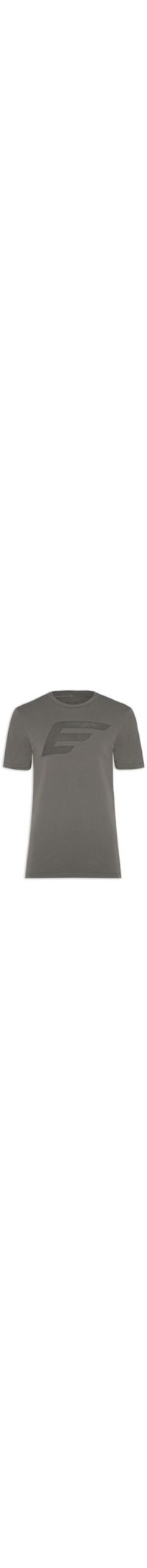 A t-shirt cinza é confeccionada em malha de algodão de média elasticidade. A peça solta ao corpo, possui gola careca com acabamento canelado, mangas curtas e logo da marca estampado na parte frontal em tom contrastante.