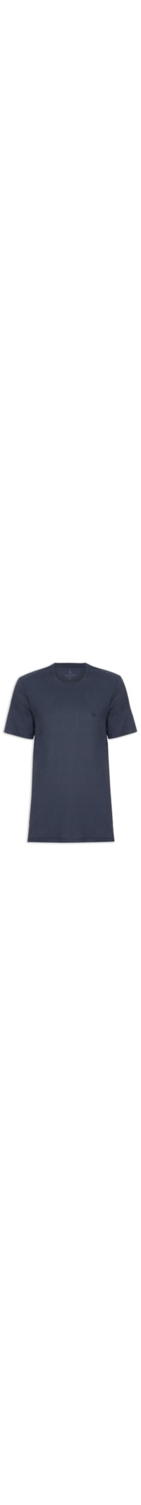 A t-shirt azul é confeccionada em malha de algodão com média elasticidade. A peça solta ao corpo possui gola careca com acabamento canelado, mangas curtas e logo da marca bordado na altura do tórax.
