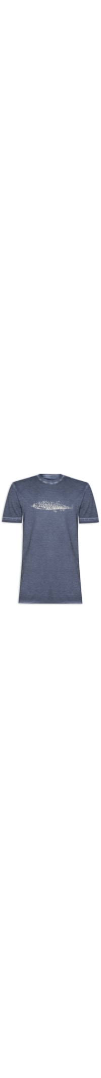 A t-shirt azul marinho é confeccionada em malha de algodão com média elasticidade. A peça de modelo dupla face e modelagem regular, solta ao corpo gola careca com acabamento canelado, mangas curtas, efeito estonado, nome da marca estampado em cor contrastante na parte posterior na altura da gola, estampa frontal em silk com cor contrastante, dupla face em tom contrastante e com estampa frontal em silk com cor contrastante e barra com acabamento em corte à fio.
