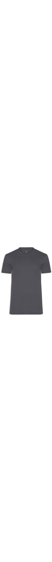 A camiseta preta é confeccionada em malha de algodão sem elasticidade. A peça solta ao corpo possui gola redonda com acabamento canelado, mangas curtas e logo da marca bordado na parte superior na altura do ombro.