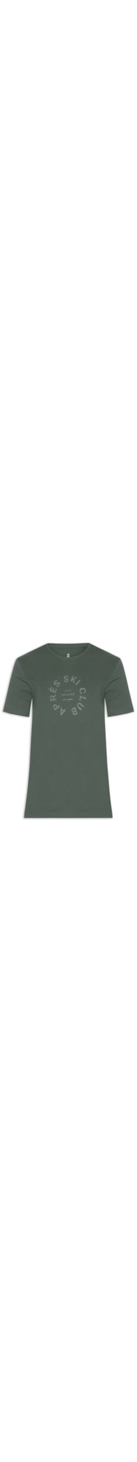 A camiseta verde é confeccionada em malha de algodão com baixa elasticidade. A peça solta ao corpo possui gola careca com acabamento canelado, mangas curtas, logo da marca estampado na parte posterior em tom contrastante e estampa frontal em silk com tom contrastante.