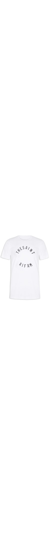 A camiseta branca é confeccionada em malha de algodão. A peça possui gola redonda, mangas curtas, estampa frontal aplicada em silk, nome da marca aplicado na parte posterior, caimento reto e acabamento pespontado.
