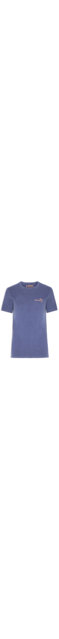 A camiseta azul é confeccionada em malha de algodão com média elasticidade. A peça solta ao corpo possui gola careca com acabamento canelado, mangas curtas, estampa de escrita aplicada na altura do tórax, logo da marca bordado na parte posterior e acabamento pespontado.