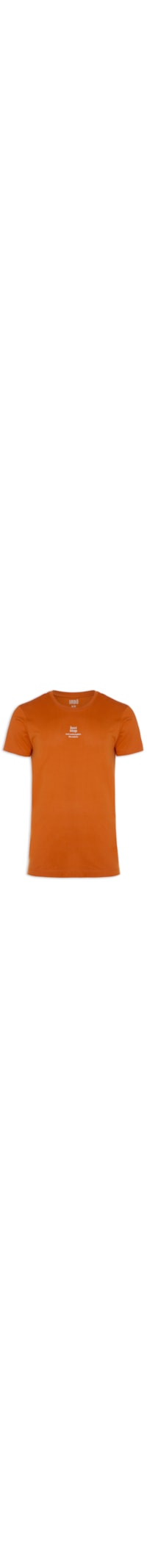 A camiseta laranja é confeccionada em malha de algodão. A peça possui gola careca com acabamento canelado, mangas curtas, estampa escrita em silk aplicada na parte frontal, logo da marca em silk aplicado na parte posterior, shape solto, caimento reto e acabamento pespontado.