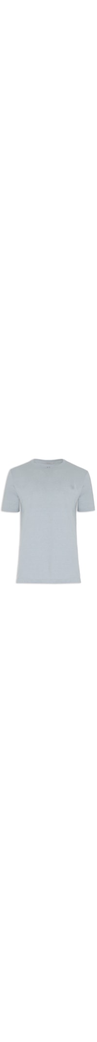 A Camiseta azul é confeccionada em malha de algodão com toque de linho e média elasticidade. A peça solta ao corpo possui gola careca com acabamento canelado, mangas curtas e logo da marca bordado na altura do tórax.