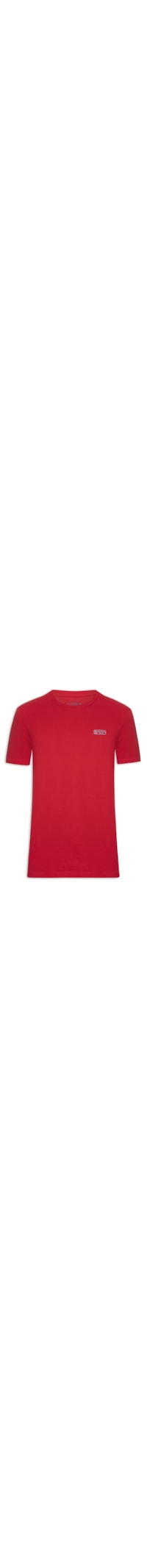 a camiseta Vermelha é Confeccionada Em malha De algodão Com Média Elasticidade. A Peça Possui Gola Careca Com Acabamento Canelado, Mangas Curtas E Logo E Nome Da Marca Aplicados Na Altura Do Tórax Em Cor Contrastante.