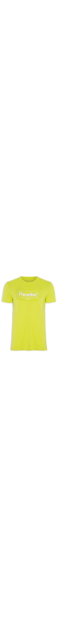 A camiseta amarela é confeccionada em malha de algodão. A peça possui gola careca com acabamento canelado, mangas curtas, estampa escrita e nome da marca aplicados em silk na parte frontal e shape solto.