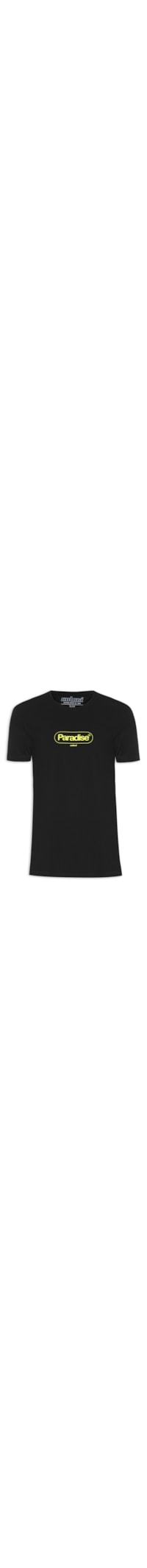 A camiseta preta é confeccionada em malha de algodão. A peça possui gola careca com acabamento canelado, mangas curtas, estampa escrita e nome da marca aplicados em silk na parte frontal e shape solto.