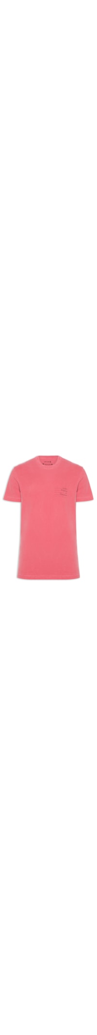 A camiseta vermelho é confeccionada em malha de algodão com baixa elasticidade. A peça solta ao corpo possui gola careca, mangas curtas, estampa escrita aplicada em silk de tons contrastantes e efeito estonado.