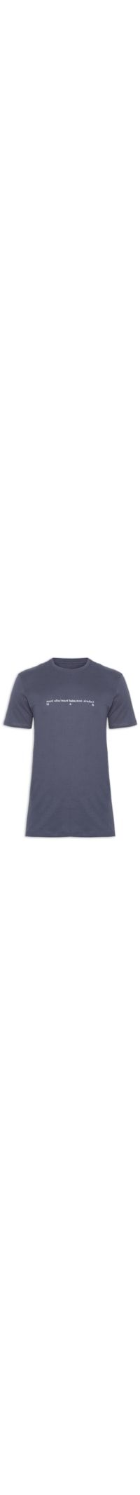 A camiseta azul é confeccionada em malha de algodão com média elasticidade. A peça solta ao corpo possui gola careca com acabamento canelado, mangas curtas, estampa frontal escrita aplicada em silk na cor branca e logo da marca estampado em silk de cor cinza na parte posterior.