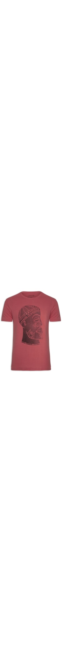 A t-shirt vermelha é confeccionada em malha de algodão. A peça possui estampa figurativa aplicada em silk na parte frontal, gola careca com acabamento canelado, mangas curtas, caimento reto, shape solto e acabamento pespontado.