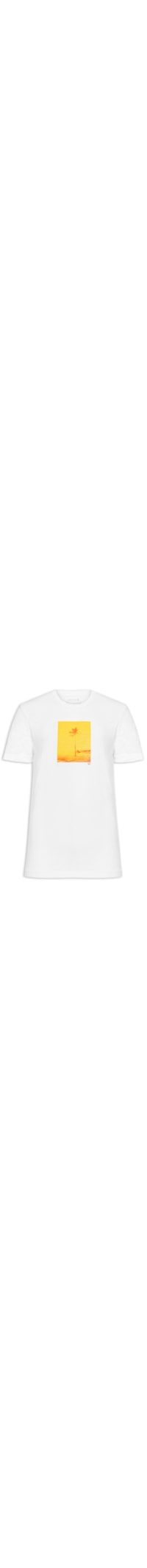 A camiseta branca é confeccionada em malha de algodão com superfície texturizada e média elasticidade. A peça de modelo slim solta ao corpo possui gola careca com acabamento canelado, mangas curtas e estampa frontal em silk em cores contrastantes.