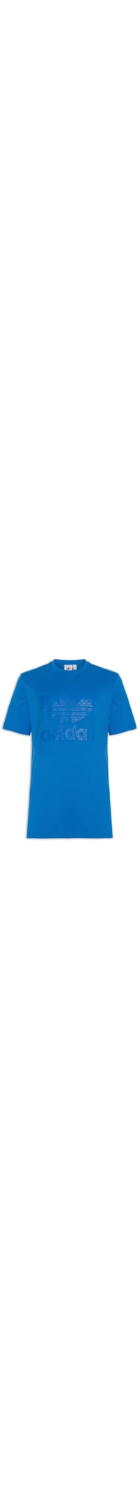 A camiseta azul é confeccionada em malha de algodão. A peça possui gola careca com acabamento canelado, mangas curtas, logo da marca estampado em silk centralizada na parte frontal e shape solto.
