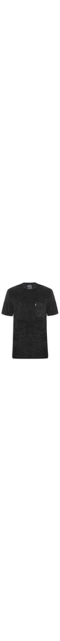 A Camiseta preta é confeccionada em malha com superfície atoalhada e média elasticidade. A peça solta ao corpo de modelagem oversized* possui ombros estendidos, mangas curtas, bolso frontal com tag da marca aplicada e barra estendida.