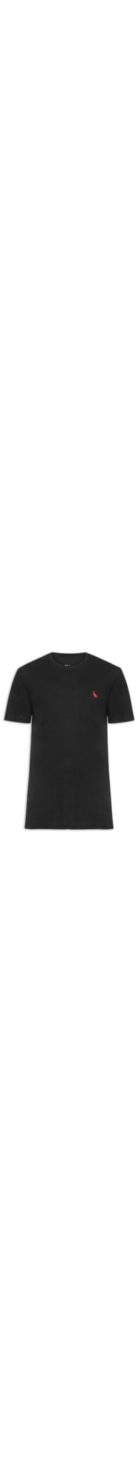 A camiseta preta é confeccionada em malha de algodão sem elasticidade. A peça possui gola careca com acabamento canelado, mangas curtas, caimento ajustado ao corpo, logo da marca bordado na altura do tórax em cor contrastante, acabamento pespontado e barra reta.