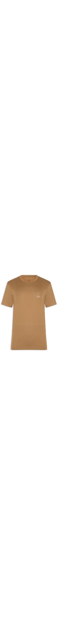 A camiseta bege é confeccionada em malha de algodão pima e média elasticidade. A peça solta ao corpo possui gola arredondada, mangas curtas e logo da marca aplicado na parte frontal.
