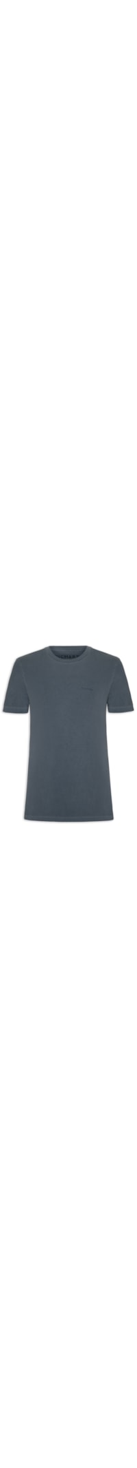 A t-shirt azul é confeccionada em malha piquet com média elasticidade. A peça solta ao corpo possui gola redonda com acabamento canelado, mangas curtas, nome da marca aplicado em silk de tom contrastante na parte frontal e efeito estonado.