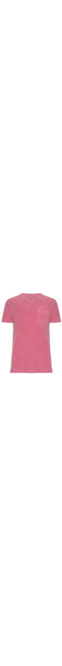 A t-shirt rosa é confeccionada em malha de algodão. A peça possui gola careca com acabamento canelado, mangas curtas, bolso frontal aplicado na altura do tórax, efeito estonado e shape solto.