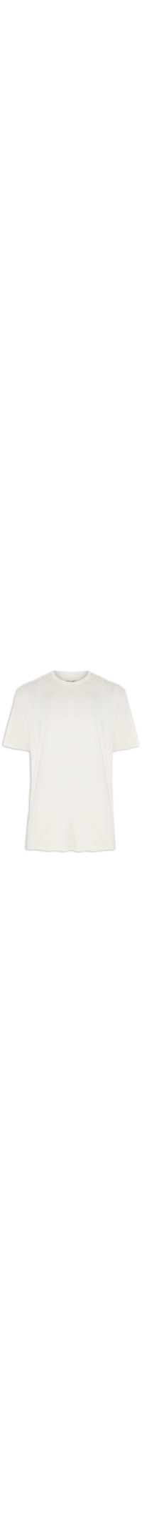 a T Shirt Off White é Confeccionada Em Malha De Algodão. A Peça Possui Gola Careca, Detalhe De Costuras Frontais, Acabamento Destroyed Em Suas Mangas E Barra E Shape Solto.