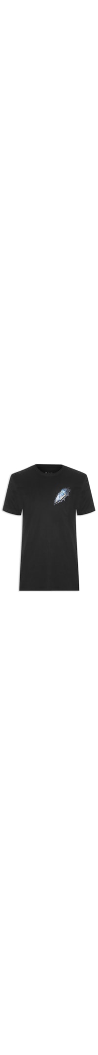 A camiseta preta é confeccionada em malha de algodão com média elasticidade. A peça solta ao corpo possui gola careca com acabamento canelado, mangas curtas, estampa frontal aplicada em silk de cores contrastantes na altura do tórax e logo da marca estampado em silk de cor cinza na parte posterior.