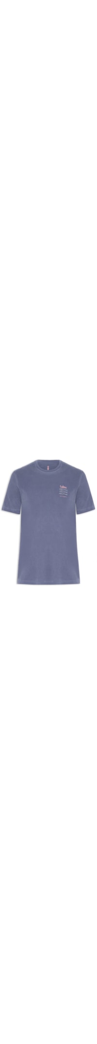 A camiseta azul é confeccionada em malha de algodão com média elasticidade. A peça solta ao corpo possui gola redonda com acabamento canelado, mangas curtas, efeito estonado e estampa frontal e posterior em cores contrastantes.