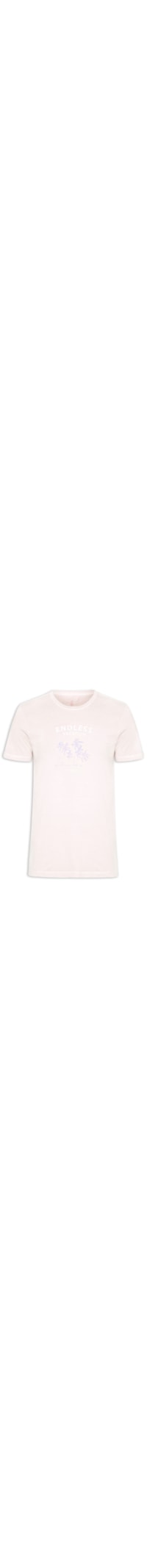 A T-shirt rosa é confeccionada em malha de algodão leve de baixa elasticidade. A peça solta ao corpo possui decote redondo com gola careca, estampa frontal figurativa em cores contrastante centralizada, na parte posterior logo da marca estampado proximo ao decote em cor contrastante, comprimento médio.