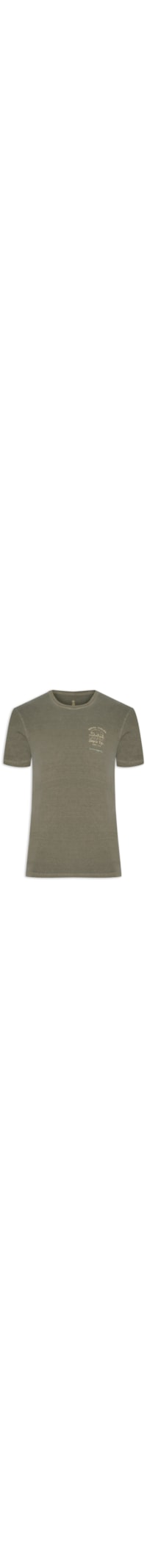 A t-shirt marrom é confeccionada por malha de algodão com média elasticidade. A peça solta ao corpo possui gola careca com acabamento canelado, mangas curtas, efeito estonado e estampa em silk na altura do tórax e na parte posterior em cores contrastantes.