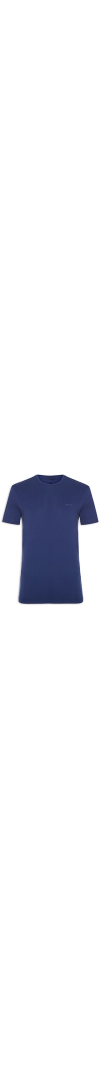 A camiseta azul é confeccionada em malha de algodão com baixa elasticidade. A peça solta ao corpo de modelo slim possui gola careca com acabamento canelado, mangas curtas e nome da marca bordado na parte frontal do tórax.