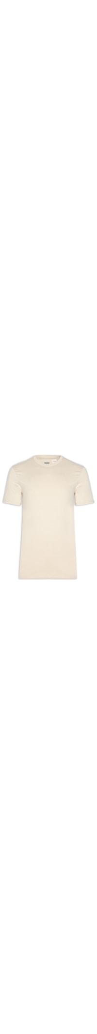 A t-shirt bege é confeccionada em malha de algodão de média elasticidade. A peça solta ao corpo, de modelagem slim, possui decote redondo com acabamento canelado, mangas curtas e tag da marca aplicada na manga.
