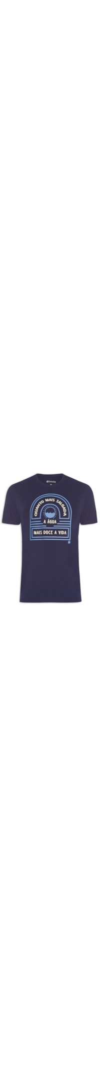 A t-shirt azul é confeccionada em malha de algodão. A peça possui gola careca canelada, mangas curtas, estampa frontal aplicada em silk de cores contrastantes, logo da marca aplicado na parte posterior, caimento reto e acabamento pespontado.