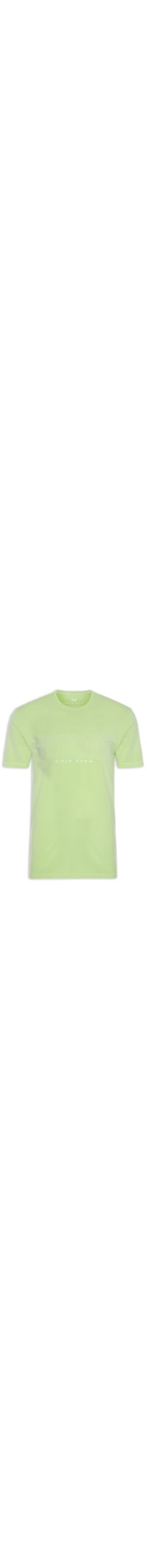 A camiseta verde é confeccionada em malha de algodão. A peça possui gola careca com acabamento canelado, mangas curtas, estampa em silk e cor contrastante aplicada na parte frontal, shape solto, caimento reto e acabamento pespontado.