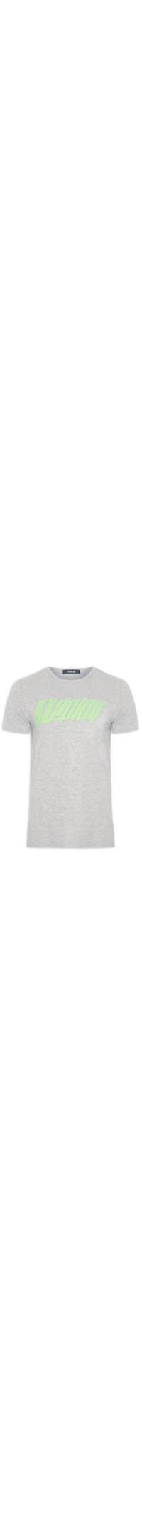 A t-shirt cinza é confeccionada em malha de algodão. A peça possui gola careca, mangas curtas com logo da marca aplicado, estampa frontal em silk, caimento reto e acabamento pespontado.