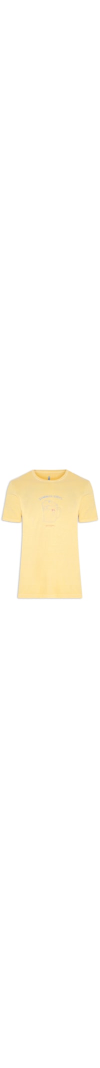A Camiseta amarela é confeccionada em malha de algodão de média elasticidade. A peça solta ao corpo possui gola careca com acabamento canelado, mangas curtas, estampa frontal figurativa aplicada em silk com tons contrastantes e tag emborrachada da marca aplicada na parte posterior.