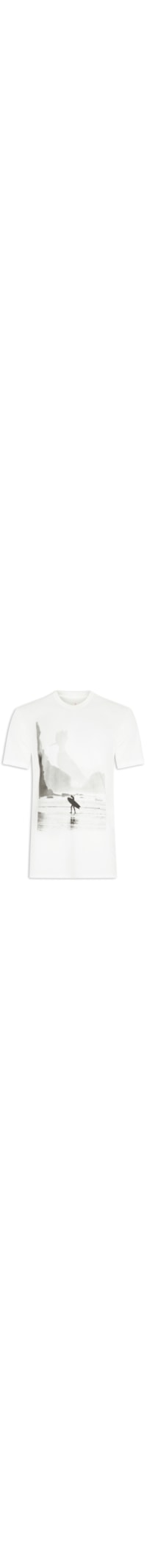 A camiseta off white é confeccionada em malha de algodão. A peça possui gola careca com acabamento canelado, mangas curtas, logo da marca estampado na parte posterior em cor contrastante, estampa frontal em silk com cor contrastante e com detalhe do logo e nome da marca e shape solto.