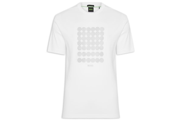 Aposte em um visual descolado com esta camiseta Boss combinada com uma calça bege e um tênis.