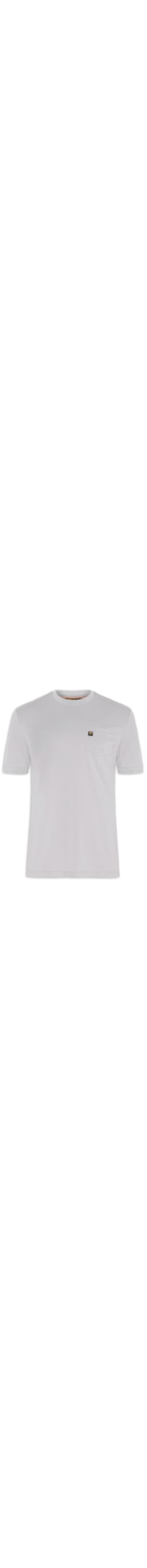 A camiseta cinza é confeccionada em malha de algodão. A peça possui gola careca com acabamento canelado, mangas curtas com acabamento canelado e detalhes de tramados, recorte posterior e nas mangas, bolso frontal com tag emborrachada da marca aplicada na altura do tórax, fendas laterais e shape solto.